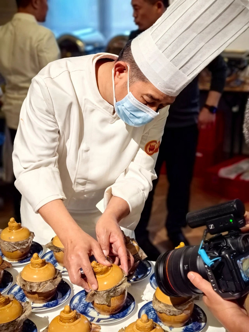 Chef Hu Manrong prepares Buddha Jumps Over the Wall live at UNESCO.