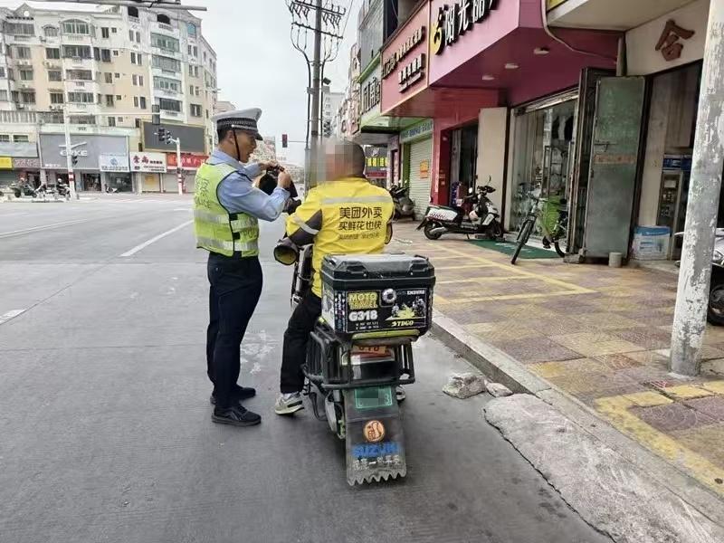 交警对电动自行车未佩戴安全头盔等交通违法行为集中整治(图片来源:泉州市公安局交通警察支队)