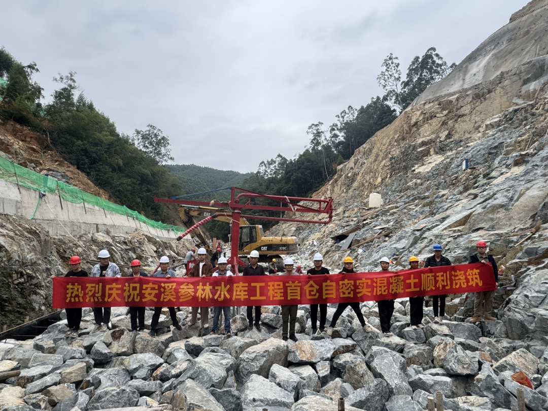 近日,安溪县参林水库大坝首仓堆石混凝土(即首仓自密实混凝土)顺利浇筑,标志着该工程正式进入冲刺阶段,为泉州市水利基础设施建设再添重要成果。
