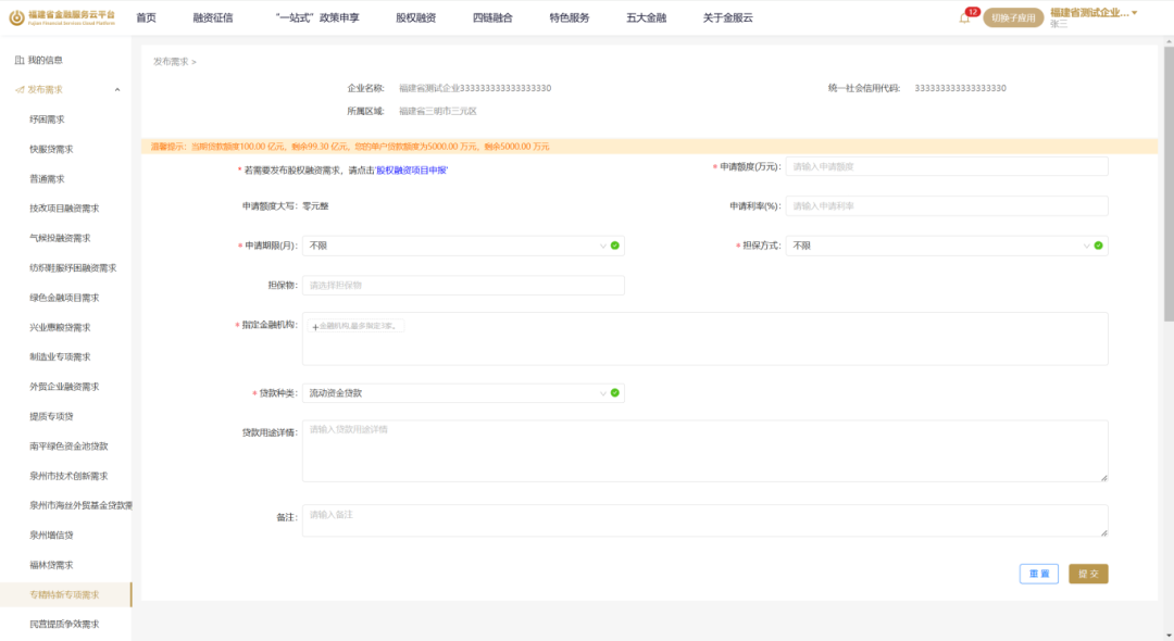 为推动专精特新中小企业高质量发展,福建省工信厅联合有关部门在已推出三期专精特新中小企业专项资金贷款(共280亿元规模)的基础上,2026年再设立两期福建省专精特新中小企业专项资金贷款,其中:第四期规模100亿元贷款将于2026年3月13日在“金服云”平台上线,在可用额度范围内实行“先到先得”。符合条件的企业可通过“金服云”平台申请,也可直接向合作银行机构申请,由银行协助通过“金服云”平台提交申请。