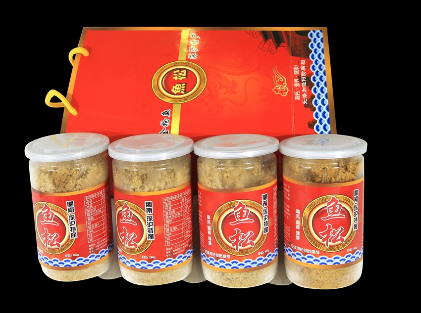 Shenhu Tuna Floss is a golden, fluffy dried condiment made from high-quality tuna caught from the 200-meter-deep waters of Shenhu Harbor. The production process involves washing fresh tuna, then carefully removing bones, scales, fins, head, tail, and internal organs. After cleaning and steaming with ginger, scallions, vinegar, and yellow wine, the fish is cooled and hand-picked. The meat is then dehydrated, crushed, and stir-fried over low heat until it becomes loose and flaky. Finally, salt, sugar, and other seasonings are added, and small bones are removed to produce the signature fluffy texture.