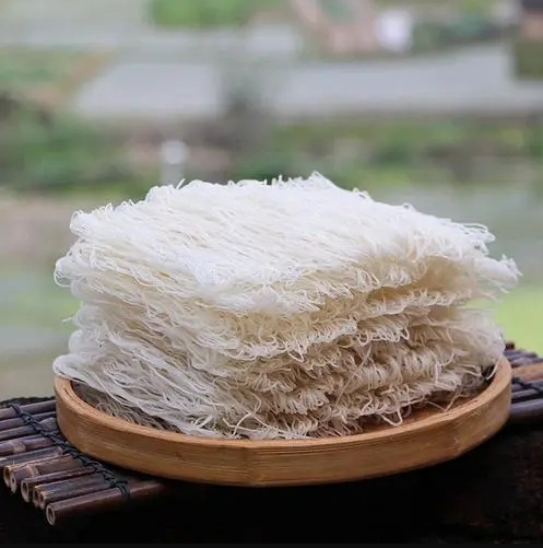 With a history spanning over 600 years, Hutou Rice Noodles are made from high-quality rice, using a traditional production process that involves eleven steps, including rice selection, soaking, grinding, pressing, boiling, stirring, shaping, drying, and packaging. These noodles are celebrated for their exceptional quality, with a texture described as "crystal white, fine as silk, firm as a spring, smooth like jade, and light as fluff."