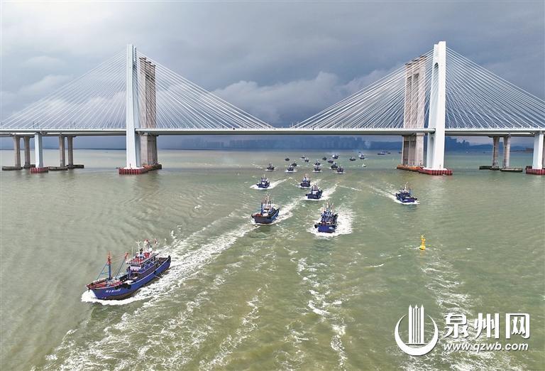 Fishing boats sail through Quanzhou Bay.