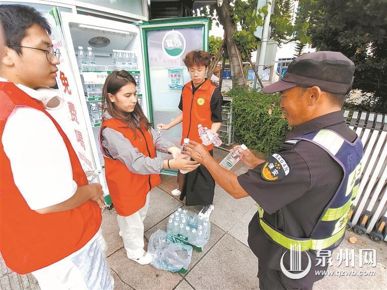 The "love fridge" at the Quanzhou Experimental Primary School is the only one located at a school entrance, serving many bus and sanitation workers. Since its launch on 16 July, over 400 students and parents volunteered to replenish water supplies. The Parent-Teacher Association, including volunteers Cai Yingying, Zheng Hui, and Chen Xiaoli, organised students to refill water twice daily, distributing a total of 1,320 boxes.