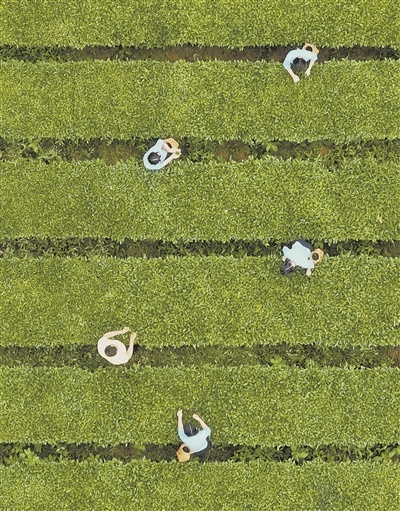 A worker picking tea leaves in a plantation in Anxi County. (Xinhua News Agency / Wei Peiquan)