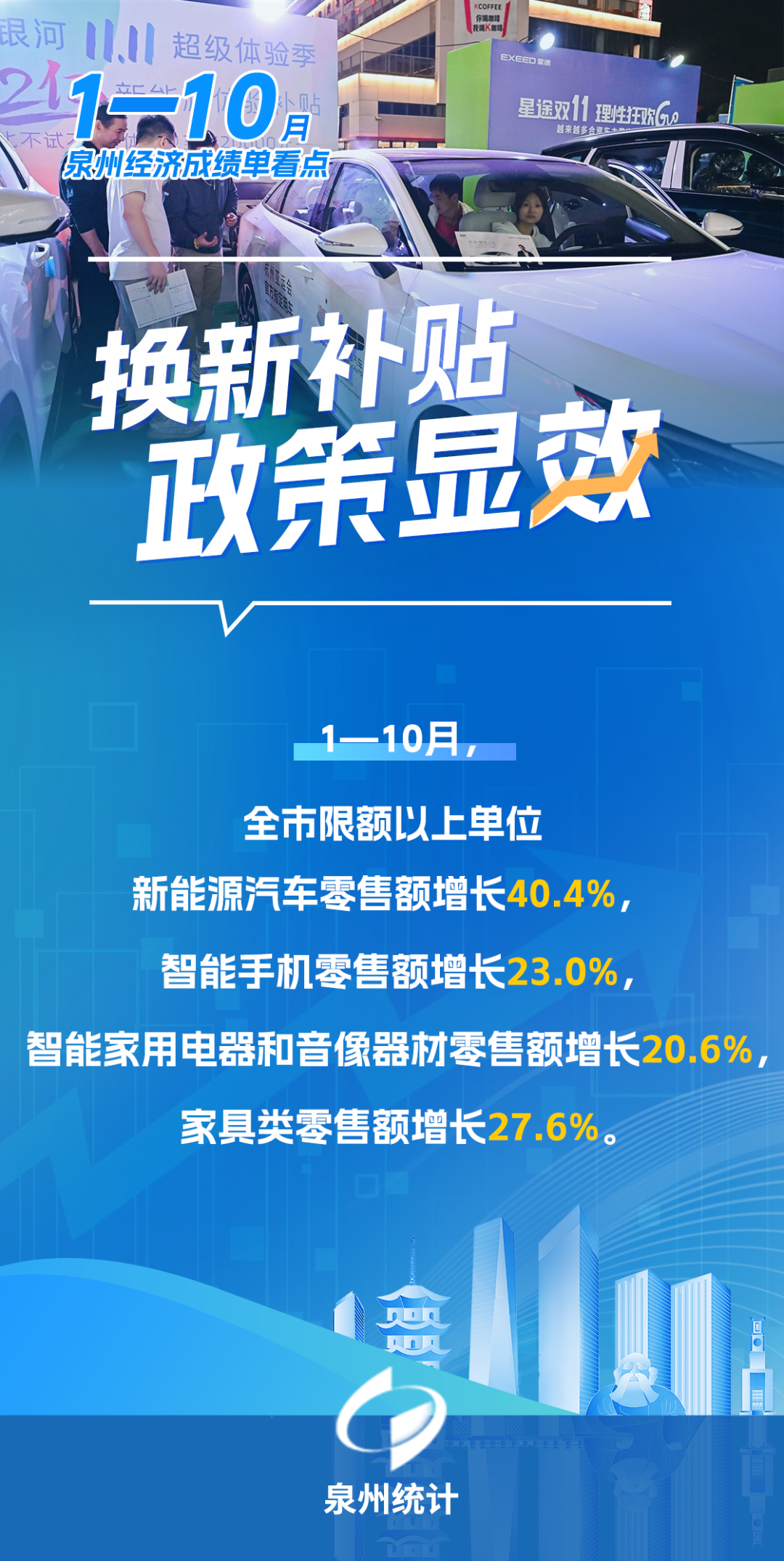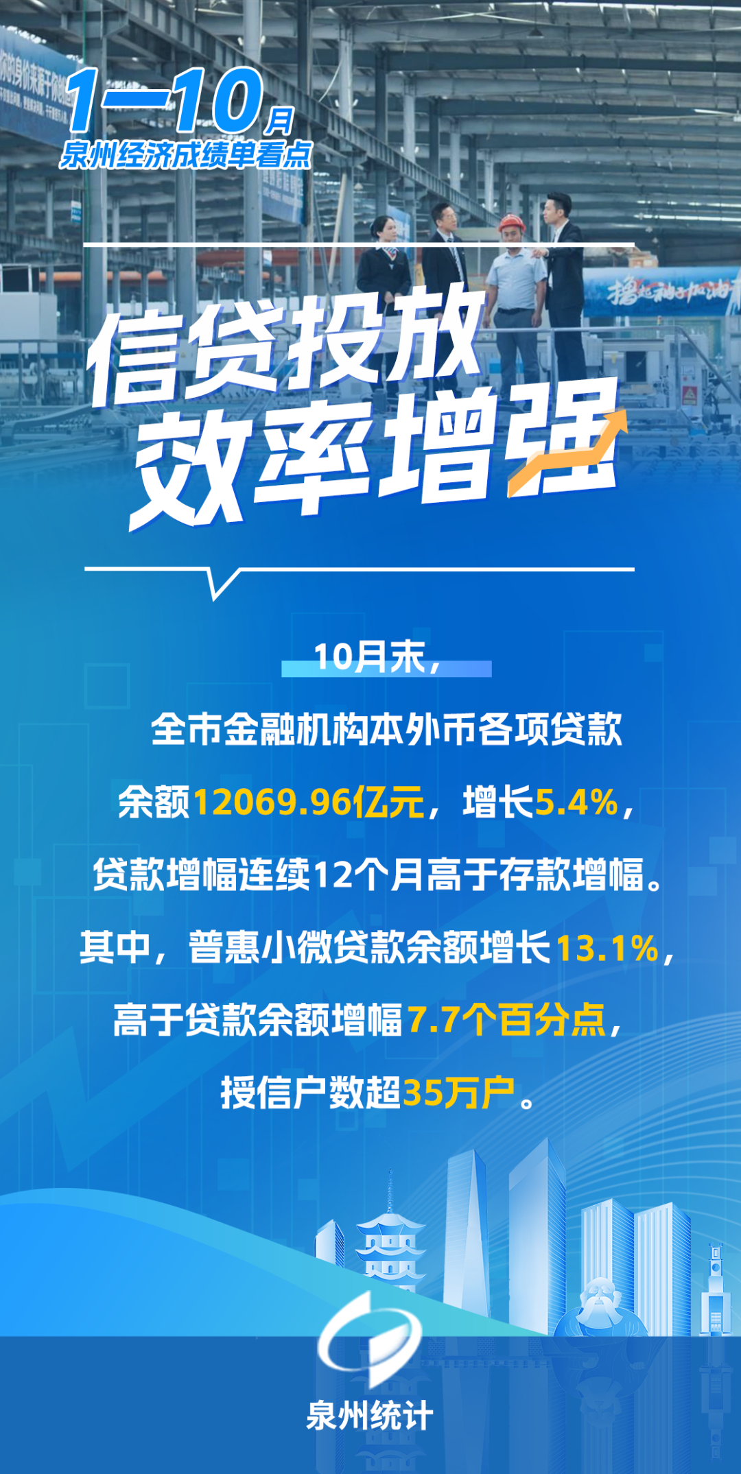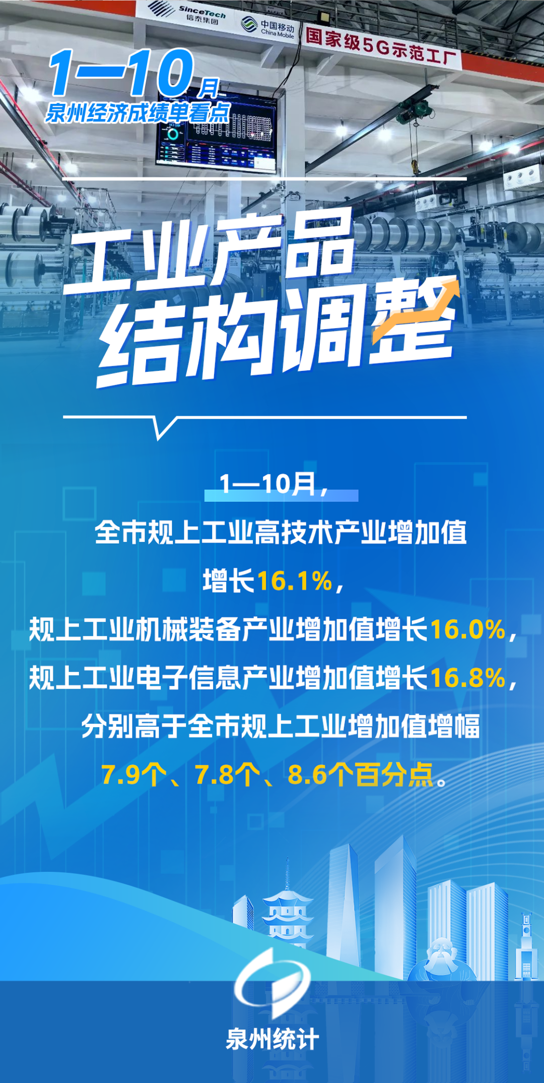 今年以来,泉州坚持稳中求进工作总基调,完整、准确、全面贯彻新发展理念,深化拓展“深学争优、敢为争先、实干争效”行动,坚持“稳一优二强三”战略思维,新质生产力加快形成,高质量发展扎实推进。1—10月,全市经济运行总体平稳、稳中提质。