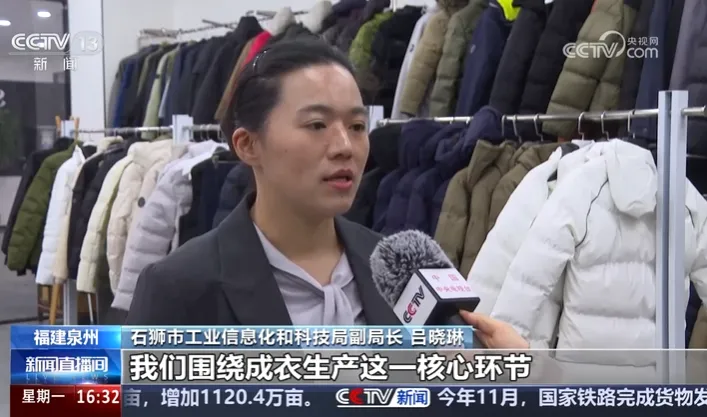 石狮市工业信息化和科技局副局长吕晓琳表示,围绕成衣生产这一核心环节,引入了一大批上下游的关联企业。包括从设计、研发、生产、后端的销售、检验检测,包括配套的物流等各个生产环节,出台了一系列的政策,鼓励企业进行智改数转和数字化转型,目前园区里面90%的企业都已经完成了数字化改造。园区的亩均税收由原来的6万元提升到30万元。
