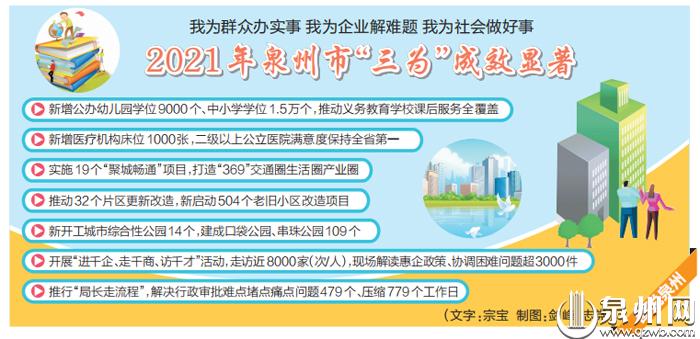 百年党史,就是一部为人民谋幸福的奋斗史。在开展党史学习教育过程中,泉州践行“以人民为中心”的发展思想,在扎实做好“规定动作”基础上,主动拓展“自选动作”,创新性地把“我为群众办实事”延伸拓展为“我为群众办实事”“我为企业解难题”“我为社会做好事”三大实践载体,坚持任务项目化、项目清单化、清单具体化,切实解决基层困难事、群众烦心事和企业期盼事。