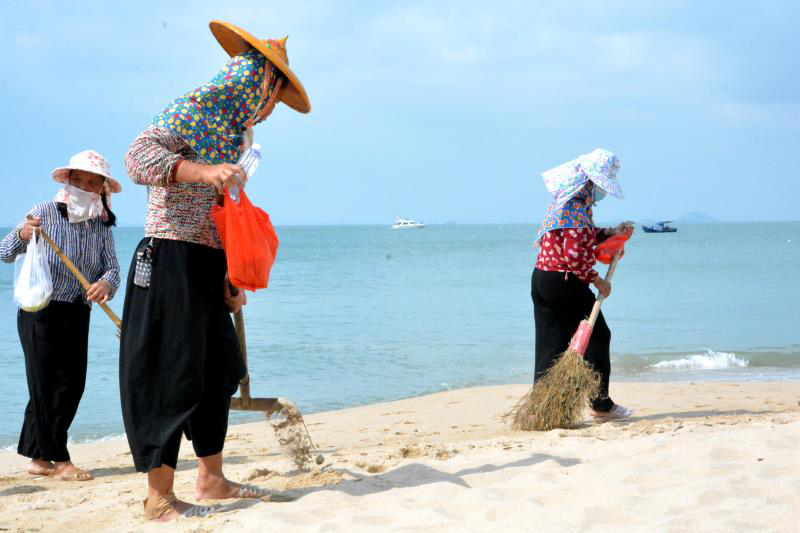 图为惠安崇武净滩志愿者正在清理垃圾