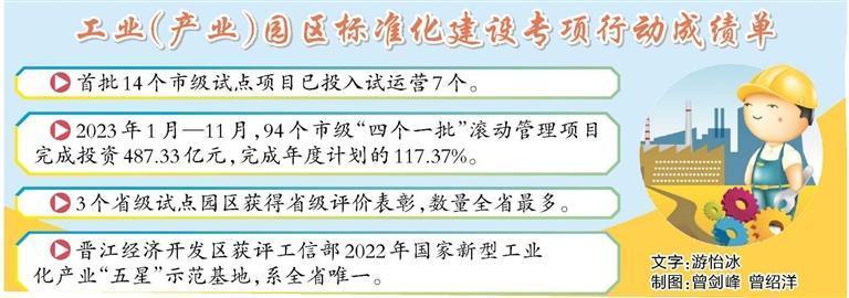 去年以来,泉州市紧抓“规划、规范、提升、示范、招商”5个环节,坚持以项目化清单化推动工业(产业)园区标准化建设具体化常态化。日前,泉州市《加快推进企业入驻标准化工业(产业)园区促进增产增效的指导意见》被省政府办公厅转发至各省直部门和九市一区,总结提炼的8种园区建设经验、15个实操手法、3份政策方案在全省全面推广。