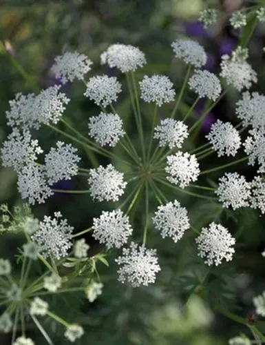 羊角芹多半长在海拔1500米至2400米的山区,它在林缘、林间草地、溪流两岸安家。 羊角芹与很多植物长得酷似, 比如说蛇床子,水芹、山胡萝卜,所以见到羊角芹时,一定小心甄别,免得野草也“撞脸”。小个子羊角芹三十厘米,大个子羊角芹也不超过一百厘米。随着春风的到来,它便吐出新芽,春风为它助力,伴随春风一天天拔高。它是单株生长,一根一根地生长,它的茎圆柱形直立,根细长,有紫色也有绿色,它的茎上有条纹,茎是中空,基生叶有柄,叶鞘膜质,叶柄横切面为三角形,这是区别所有相似植物的关键特征。叶片呈阔三角形、卵形或长卵状披针形,三出式羽状分裂。羊角芹的叶片有特殊的香味,就是这股味道才吸引更多的食客。羊角芹的花很美,每年六月开花,花开细密,多花组成复伞形花序,无总苞片和小总苞片;小伞形花序有多数小花,花柄不等长,萼齿退化;花瓣白色,花柱基圆锥形。白色小花与植物青蒿所开之花非常像。倒卵形的花瓣,顶端微凹,并有内折的小舌片,花柱向外反折,远远看去就像一个个小羊角。果实成对紧抱在一起,近长圆形或长圆状卵形。
