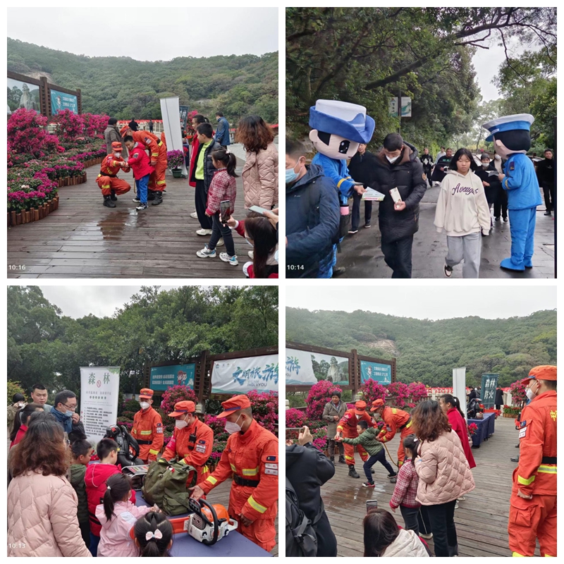 在活动现场,执法大队队员协同森防救援人员共同向市民游客分发防火宣传单,进行防火科普宣传。森防人员还邀请游客体验风力灭火机、水枪等的使用方式,向他们讲解各种灭火装备的原理及如何防止森林火灾发生、发生火灾时如何开展自救、如何正确报森林火警等知识,通过现场参与体验等方式,进一步提高游客、市民朋友的森林防火意识,筑牢景区森林防火安全屏障。