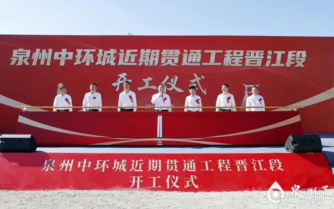 蔡战胜宣布泉州中环城路近期贯通工程(晋江段)项目开工(陈晓东 摄)