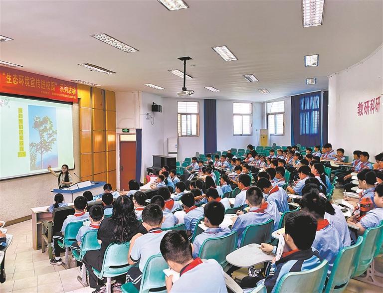 “生态环境宣传进校园”系列活动已连续举办6年,来自高校环保领域的专家、教授结合“无废城市”建设、湿地保护、生物多样性、海洋保护等不同主题,为上万名中小学生普及生态环境保护知识,激发他们积极参与环保行动的热情,以学生带动家庭,以家庭牵动社会,形成全民参与环保的良好氛围。