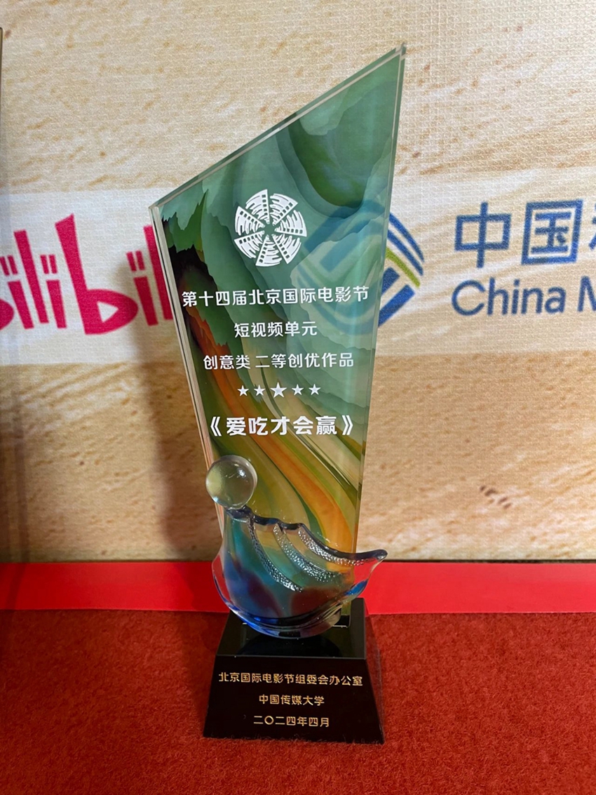 北京国际电影节创办于2011年,是在国家电影局指导下,由北京市人民政府、中央广播电视总台主办的大型国际电影活动。本次电影节短视频单元共收到来自中国、美国、法国、澳大利亚等30多个国家和地区的作品5180部,来自中央广播电视总台、人民日报客户端、抖音、B站等机构的作品入围获奖。创意类作品共826部参评,最终评出一等3部、二等6部、三等12部,《爱吃才会赢》在该组别评选中夺得二等第一位的佳绩,实属不易。