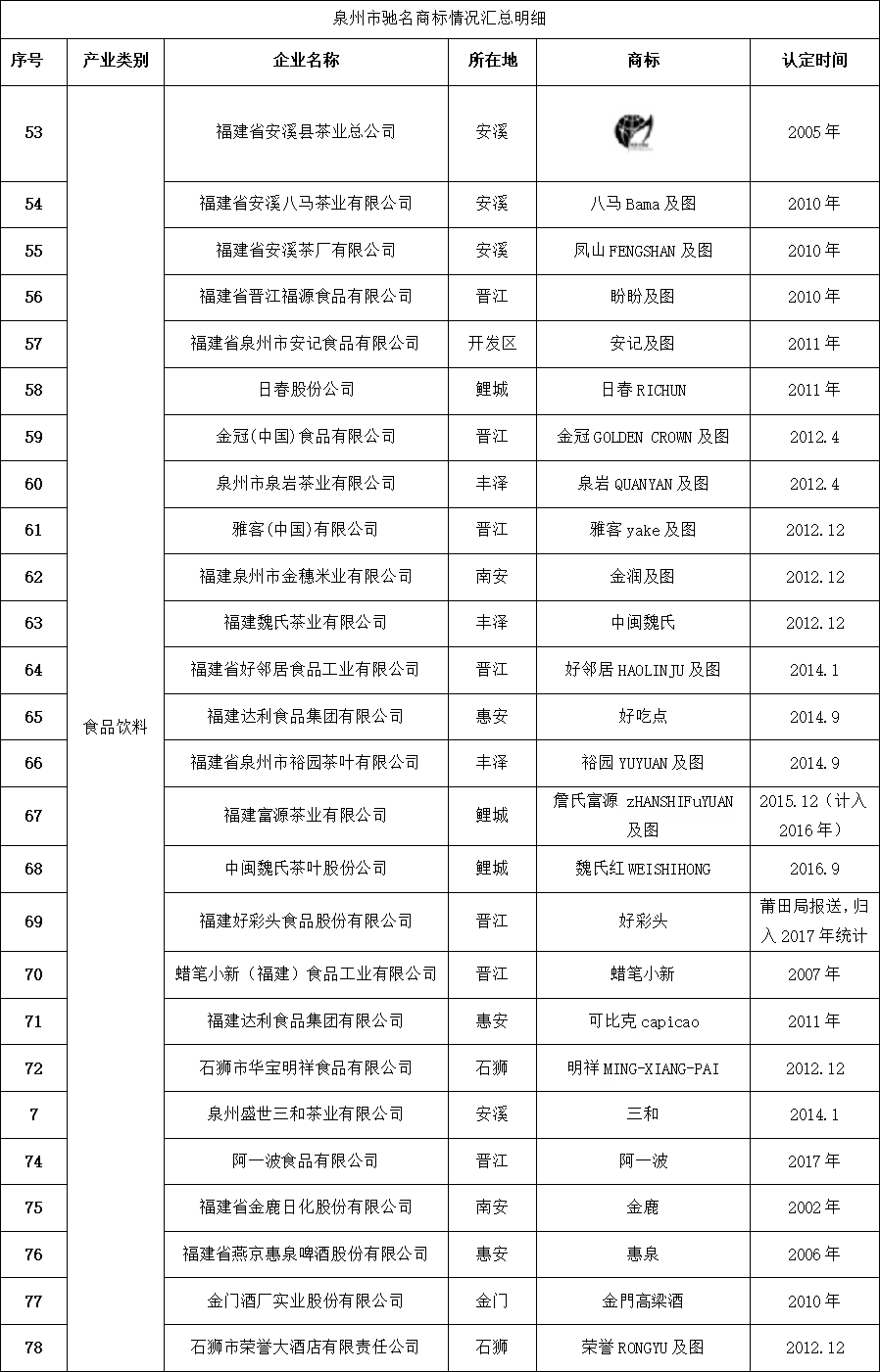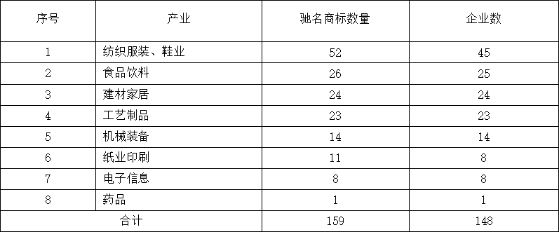 驰名商标从1991年开始由原国家工商总局进行公开评选和认定,从2013年开始,驰名商标仅按照个案原则进行认定,不再公开评选。截至2024年9月,泉州市驰名商标共159件,数量位居全国地级市前列,占全省总数的30.9%。其中,纺织服装、鞋业52件,食品饮料26件,建材家居24件,工艺制品23件,机械装备14件,纸业印刷11件,电子信息8件,药品1件(分布如图)。