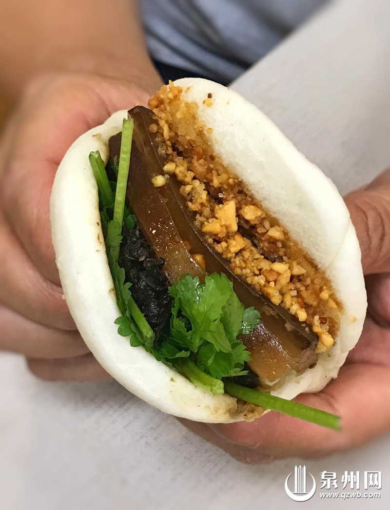 每年农历腊月十六“尾牙”,是泉州商人们设宴感谢员工一年努力付出的日子。泉州人有“食尾牙”的习俗,宴席上要吃“包金包银”的润饼和形似钱包的刈包,寓意新的一年平安发财。刈包,是将白面馍从中间割开,夹进三层肉、咸菜、香菜、花生粉等。一口咬下去,五花肉的软烂与花生粉、香菜的香味融合,让人欲罢不能。