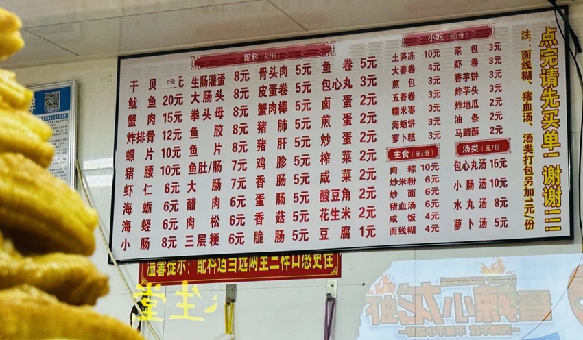 “不管是春节期间,还是其他重要的节假日,我们面线糊店坚持不涨价,所有食品一律按照墙上悬挂的价格表执行,确保每位进店顾客都是一视同仁的价格,”婷婷面线糊店老板表示。