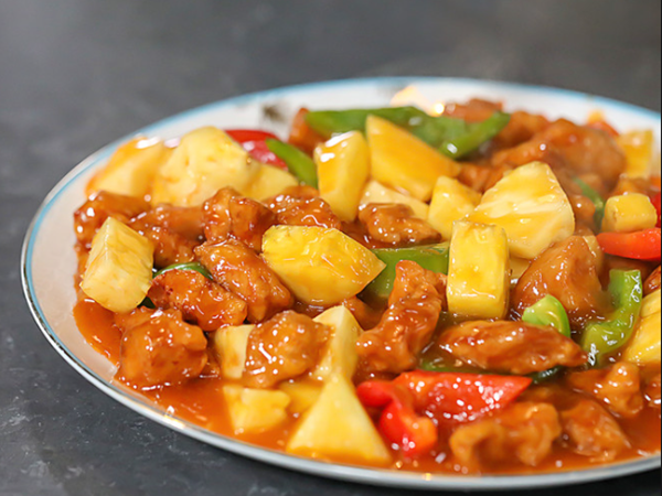季节限定的彭溪菠萝,搭配精选鲜嫩猪肉,裹粉炸至酥脆,是家宴上的经典佳肴,色泽红亮诱人,肉块外酥里嫩,菠萝清甜多汁,酸甜交融,口感丰富。