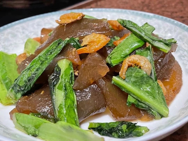 正如诗人所云:“珍馐美馔盘中聚,薯香四溢韵悠长。”这道菜是闽南家常特色小炒,色泽诱人,地瓜粉的深褐与青菜的翠绿相互映衬。那地瓜粉爽滑劲道,吸饱了酱汁的浓郁滋味,让人回味无穷,是东田盛宴中不可或缺的美味