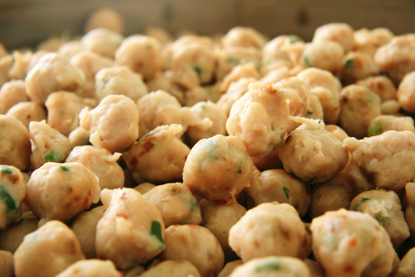 林梨文在不同月份所用原料制作的鱼丸,配料比例也不相同,这是他在常年制煮鱼肉丸的实践中摸索发现的。用鱼肉泥猪肉馅做成包心鱼丸,是阿文鱼丸的绝招。