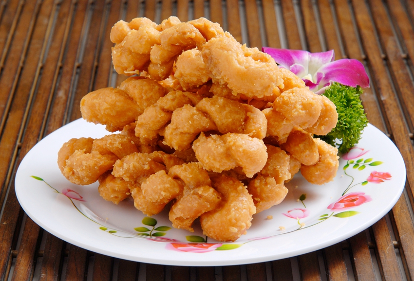 泉州蒜茸枝,原本就是中原移民带到泉州来的、那种北方面食麻花的变种。泉州人脑子灵,吃东西也能吃出花样来。麻花炸好了,本也平淡无奇,但泉州人做这东西时,首先打好一大盆粘稠的白糖浆,撒入刚打碎的蒜茸,热烘烘、香喷喷、刚出油锅的麻花,入糖浆里一洗澡,一裹糖浆,立马变成“傲雪凌霜”般的玉树琼枝。一入嘴,嘎嘣酥脆,经唾沫一混合,入口即化,另有一番口感在嘴头。香甜爽脆,油而不腻,脆而不硬,蒜香浓郁,让你百食不厌,回味无穷。做点心,不腻嘴,贪多吃,却不胞腹,不上火。吃了以后,不仅还想吃,还会多买些,分赠厝边头尾、亲戚五十,甚至送到海外亲朋好友那里。