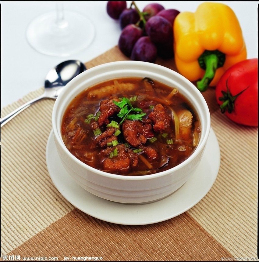 肉羹,是泉州百姓家家户户的最爱,信口就来,信手就煮。将鲜猪肉挑选好,切成厚薄适中的肉片,最好是选那种有些肥又有些瘦的三层肉,加入味精、盐巴、酱油、醋,揉捏出味。等水烧开后,放入肉羹,待一片一片肉羹从锅底浮上来,放点热花生油,撒上此前稍炒的葱蒜芫荽段,一锅甜中带着微酸、软嫩而又Q韧的肉羹就做好了。单吃也好,配饭也好,肉羹这道泉州传统美食早已成为当地百姓不可或离的美味佳肴了。至今泉州城乡各地红白喜事,往往少不了这道美食。