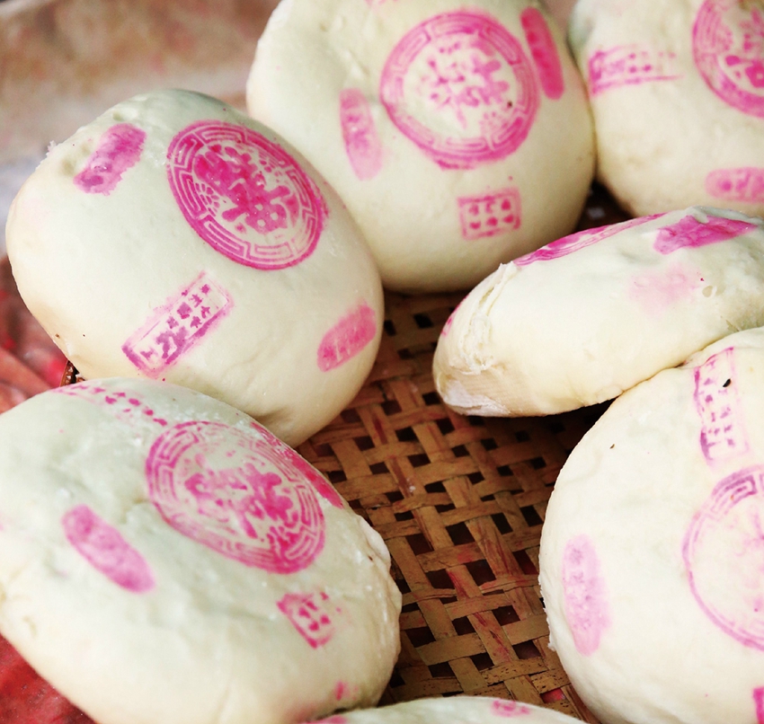 因大花包由面粉发酵而成,掺与红糖蒸制,有些经济富裕的大方人家,还要特别定制有红糖、红豆、芝麻。冬瓜糖做内陷的花包,以期让亲邻祝福建家立业的新人,今后能大发大富贵,合家合族兴旺发达。花包蒸熟出笼后,或蘸食用红粉印成多角形花瓣,或贴上印有花开数瓣的油皮纸,寓意花开富贵,开枝散叶,子孙绵延。物资紧缺年代,大花包甜香绵软,既沾喜庆吉气,又是裹腹佳品,当早餐、做茶配都是一款很好的佐餐小吃。
