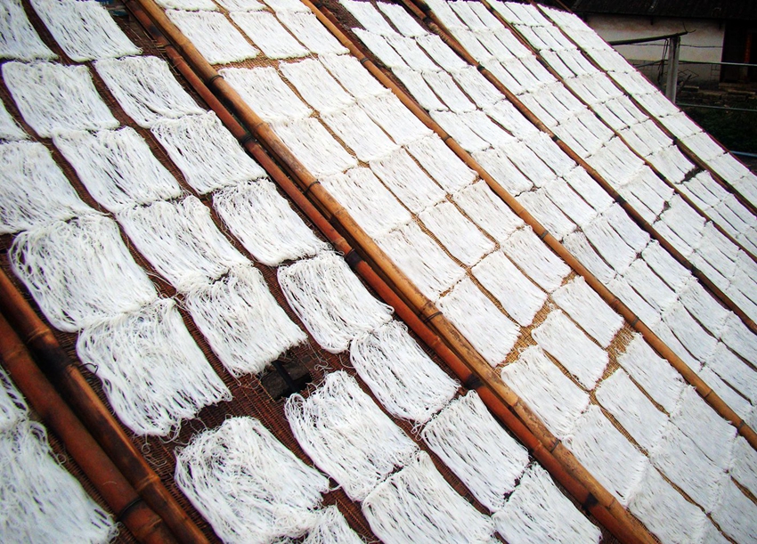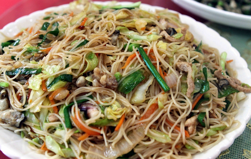 安溪湖头的炒米粉,据说比湖头的李光地宰相更出名!用当地无污染又有营养的山泉水,加入浸泡过的上等糯米,磨浆挤成条,经浸泡后晾晒。煮熟时,待开水开后下锅,掺入事先用香油炒过的海蛎或蛏干、冬笋丝、三层肉丝或猪肉罐头、香肠切片、蒜葱调味等,文火翻炒出锅,那清香Q韧有嚼劲的湖头米粉,立马能一解你的馋虫。传统的手工艺,加上当地特有的山泉水,让别的地方,永远做不出湖头米粉那种正宗纯正的味道来!