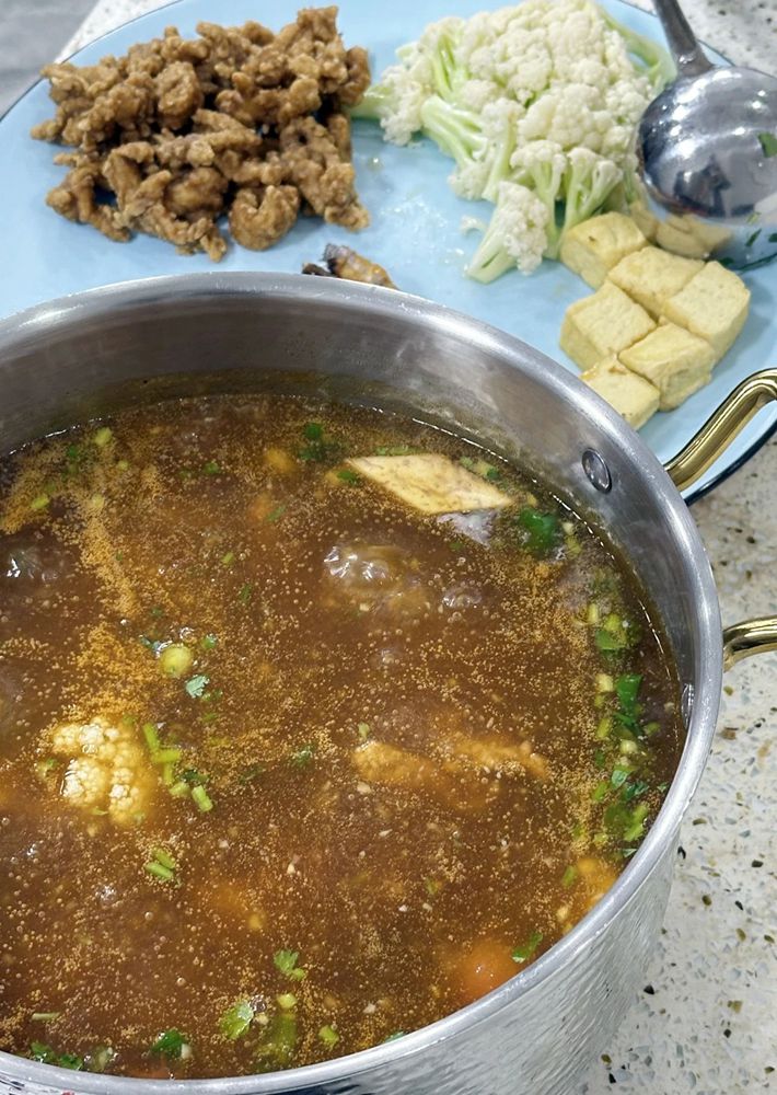 “闽式二卤汤”是闽南泉州地区的一道传统美食,其特色在于独特的风味和丰富的食材。二卤汤的主要食材包括炸醋肉、炸带鱼、花菜、西红柿等。闽南春节“拜拜”经常要准备各种炸物,这些食材家家户户都有,可以根据各自的口味进行添加和调整。