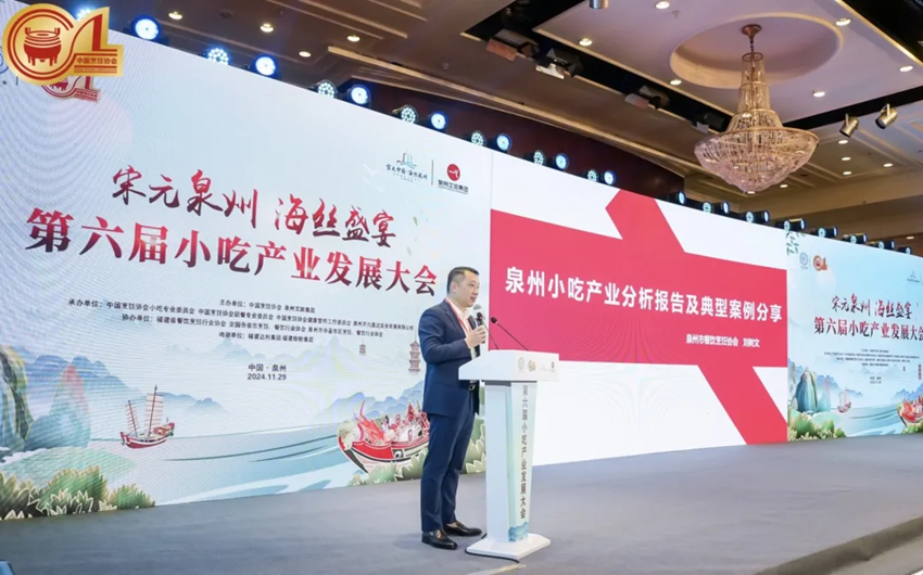 刘树文在第六届小吃产业发展大会上,做题为《泉州小吃产业分析报告及典型案例分析》的演讲