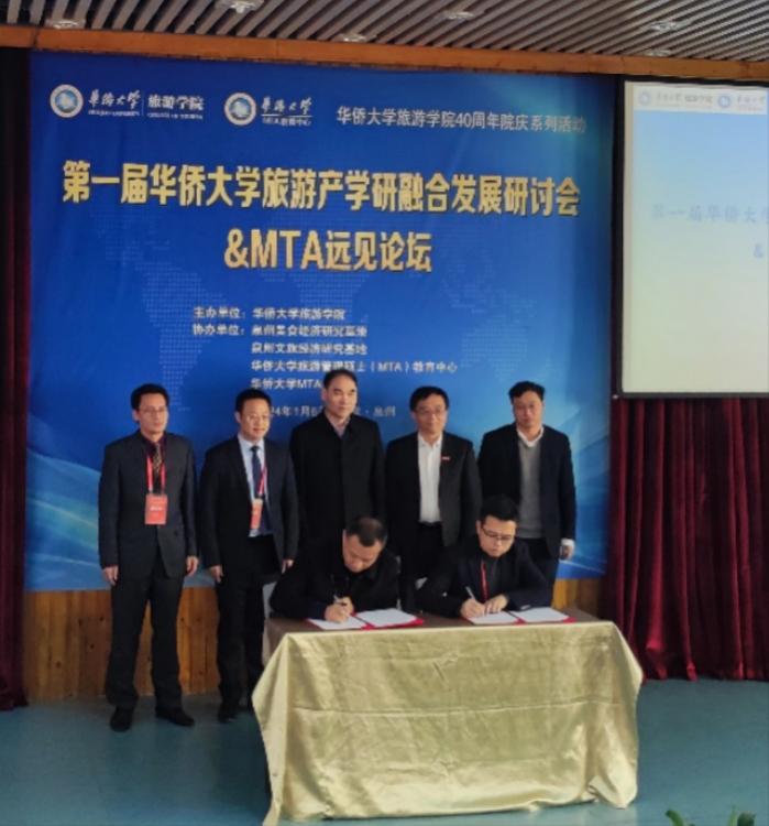 1月6日,由华侨大学旅游学院主办,泉州美食经济研究基地、泉州文旅经济研究基地、华侨大学旅游管理硕士(MTA)教育中心、华侨大学MTA校友会协办的“第一届华侨大学旅游产学研融合发展研讨会&MTA远见论坛”在庄为烜报告厅举行。