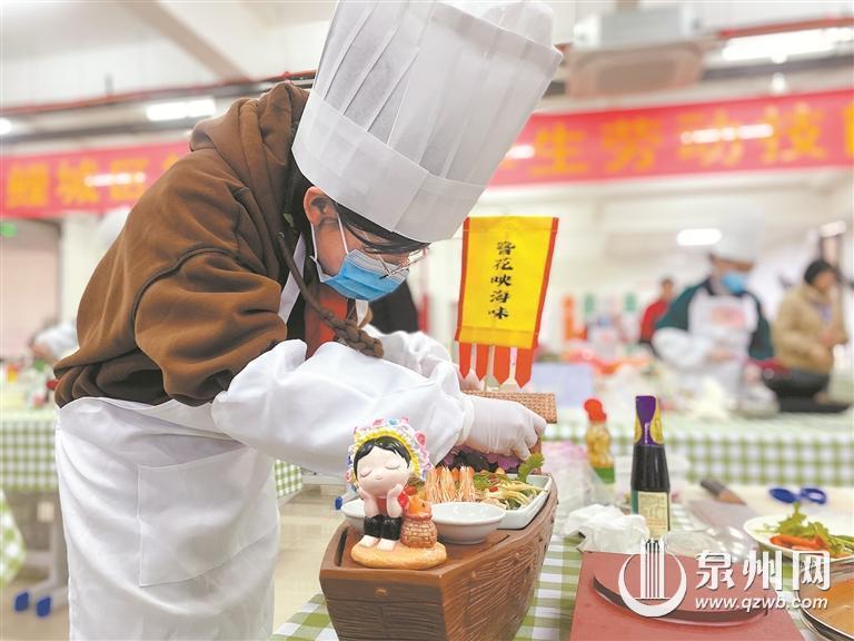 闽南卤面、姜爆乌鸡、姜母鸭、糖醋排骨、牛肉羹……一场泉州地方特色菜厨艺大比拼日前在泉州实验中学鲤城附属学校举行。在鲤城区第七届中小学生劳动技能比赛厨艺专场比赛上,来自鲤城区30多所中小学的73名学生选手以闽南热菜为主题进行烹饪比赛。