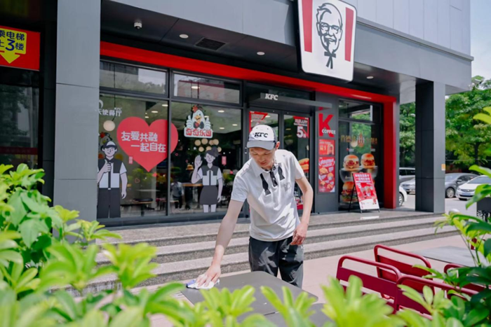 “天使”员工陈伟(化名)是一名先天的小儿麻痹症患者,肢体行动不便,过去在就业过程屡遭挫折,曾做过保安、快递员等多份工作,但大多工作都不稳定,但是如今已经是他在肯德基餐厅工作的第三个年头了。在工作中,他是“天使餐厅”重要的一份子,认真勤恳,除原本负责的餐厅解冻腌制工作外,还主动承担起餐厅内外绿植的养护工作,将餐厅当作家园一样爱护,餐厅在他的努力下变得更加美丽,让他感到非常有成就感。经过一段时间的工作,他发现自己原本僵硬的手部也慢慢变得灵活起来,整个人的状态也更加积极向上。在生活中,陈伟是两个孩子的爸爸,稳定舒心的工作让他自信地表达:“我是家里的‘顶梁柱’,在这里工作让我更有力量、更有归属感,可以的话,我希望在这里工作一辈子。”