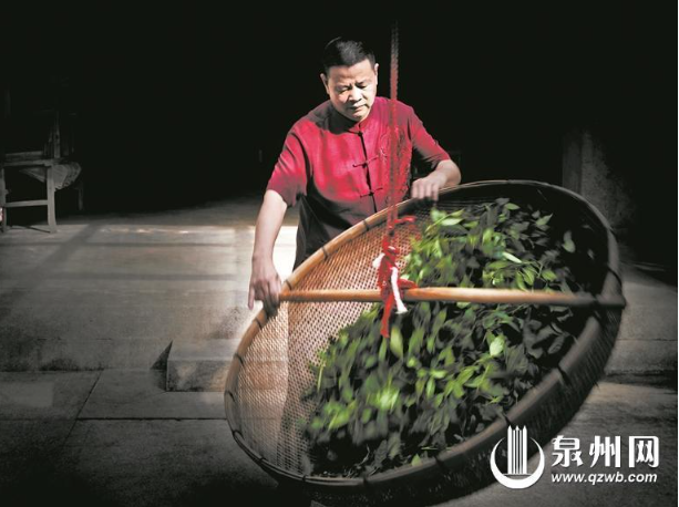 魏月德在摇青,摇青是乌龙茶制作的重要工序。