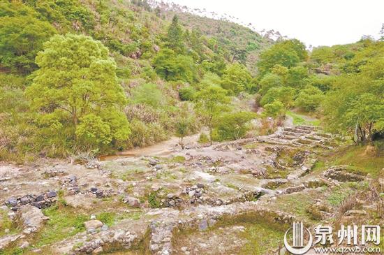 日前,在德化考古队员陈丽芳的带领下,记者探访了位于三班镇的尾林—内坂窑址。循着散落一地的古陶瓷碎片走进苍翠的林子,潺潺的上寮溪两侧,尾林窑与内坂窑隔溪相望。溯溪而上,溪南岸宽敞处,整齐的水碓坑、淘洗池、臼坑等作坊遗迹清晰可见。“村南村北春雨晴,东家西家地碓声”,唐代首任归德场长颜仁郁笔下描绘当时千家万户烧制瓷器的情景,穿越千年,绽放在眼前。