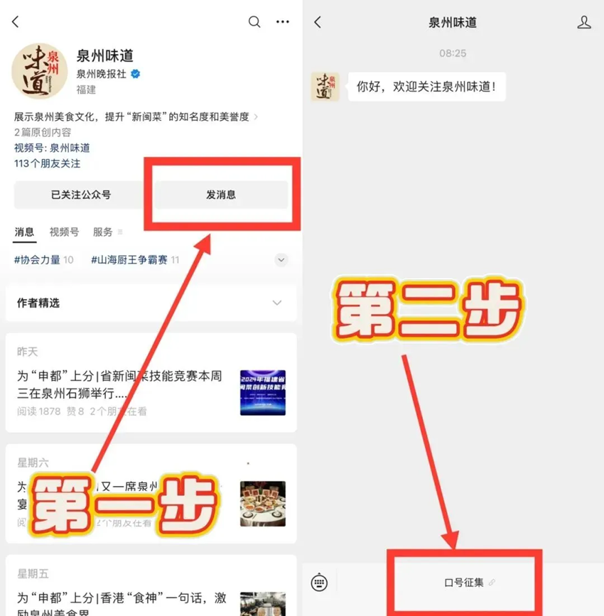 此次口号征集活动截止时间为2024年11月30日。主办方将组织专家评审,评选出金奖1名,奖金7777元;银奖1名,奖金2777元;铜奖1名,奖金1777元;优秀奖30名,每人奖金300元。大家可关注“泉州味道”微信公众号,点击“口号征集”继续参与活动。