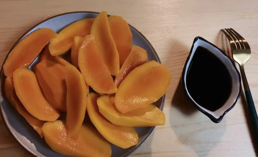 泉州本地土芒果蘸着酱油吃是绝配,也被网友们戏称为“黑暗料理”
