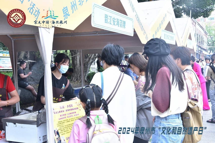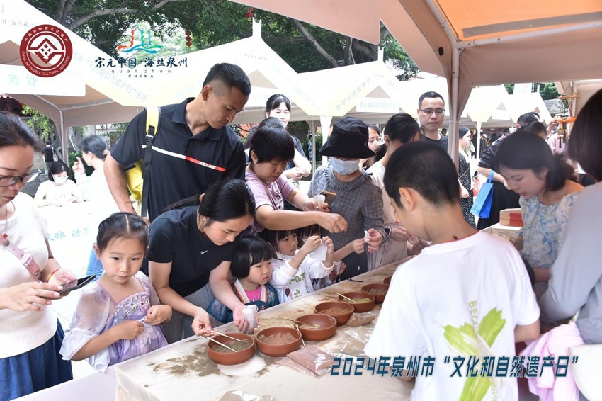 以“非遗与日常生活”为主题的“非遗购物节”同样人气爆棚,国家级非遗项目灵源万应茶、国家级德化陶瓷烧制技艺、市级非遗项目泉州小吃制作技艺(泉州贡糖)等30个非遗项目进行现场展销,涵盖传统美术、传统技艺、传统医药等方面,吸引众多游客和市民参与和体验。