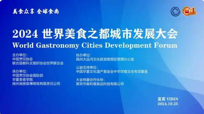 本次大会由中国烹饪协会、联合国教科文组织协会世界联合会主办;中国烹饪协会国际部、华夏美食学院、扬州淮扬菜博物馆有限责任公司承办;扬州大运河文化旅游度假区管理办公室协办;中国华夏文化遗产基金会中华饮食文化专项基金公益支持;特约合作伙伴:南京市奥利福食品科技有限公司。