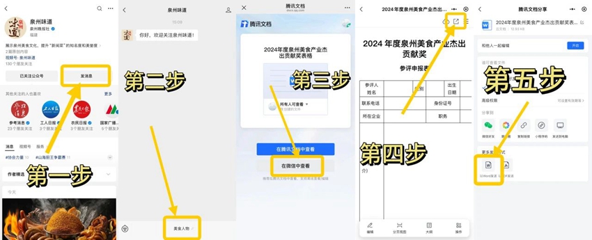 即日起,符合参评条件的个人可关注“泉州味道”微信公众号,进入会话页面,点击屏幕下方“美食人物”菜单栏,即可下载《2024年度泉州美食产业杰出贡献奖申报表》;并将填写好的电子版表格,发送至组委会指定邮箱:[email protected]。报名截止时间2025年3月3日,组委会咨询电话:0595-22500282、13328990601(邱先生)。
