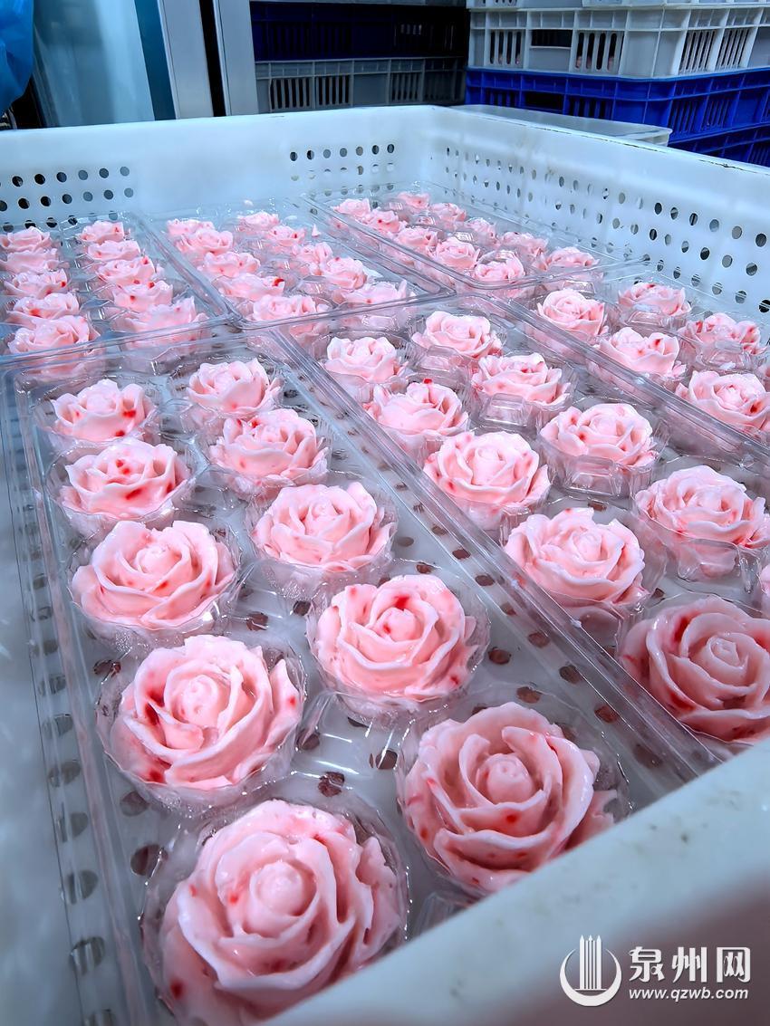 泉州网4月25日讯(融媒体记者刘文艳 通讯员魏宇曦 王凤平)近日,经泉州海关监管放行,石狮市新昶益食品科技有限公司生产的1批1508箱、30万朵鳕鱼“玫瑰”(冷冻调理鱼浆产品)顺利出口,这是“福建产”首批装饰型即烹食品实现出口“零的突破”,也是泉州海关推动“泉州味”食品内外销一体化开拓海外市场取得的新成效。