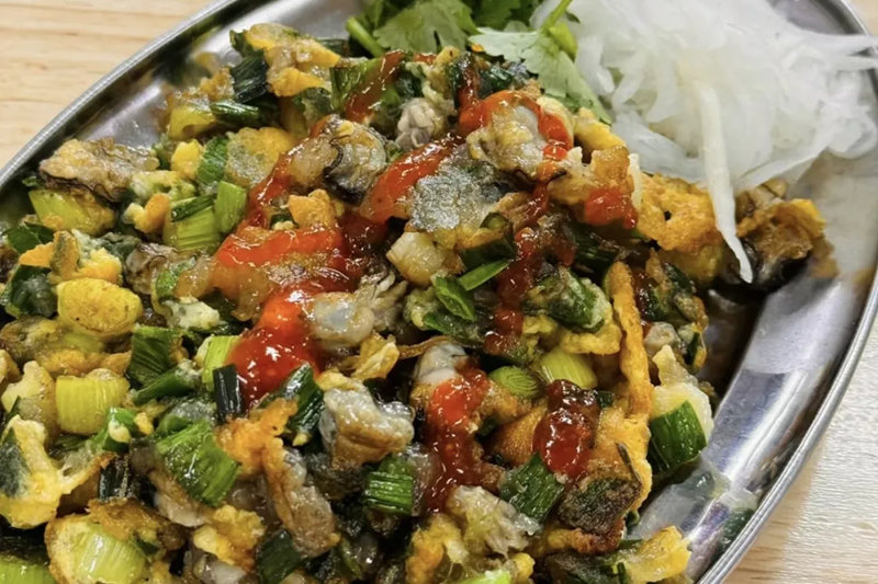 海蛎煎,是一道常见的家常菜,起源于福建泉州,是闽南、台湾、潮汕等地区经典的传统名吃之一。将韭菜切成一指节长短,和洗净的蚵仔搁在一起,加入稀释番薯粉作为黏合剂,入油锅煎至金黄。关于它的起源,有一则有趣的故事。民间传闻,1661年,荷兰军队占领台南,泉州南安人郑成功从鹿耳门率兵攻入,意欲收复失土,郑军势如破竹大败荷军,荷军在一怒之下,把米粮全都藏匿起来,郑军急中生智,索性就地取材将台湾特产蚵仔、番薯粉混合加水和一和煎成饼吃,想不到竟流传后世,成了风靡全省的名小吃。