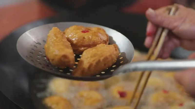 泉州台商投资区百崎乡是福建省唯一的回族乡,糋涸由伊斯兰的“油香”衍化而来,外形美观如云月,口感酥脆。糋涸外皮的原料要选取精制的面粉,掺进适量的花生油和水后反复地搓揉,然后卷成条状,再用刀切成算盘珠大小的小块,最后用擀面杖碾压成圆圆的薄片。馅要选择颗粒饱满的花生果去壳后用文火炒熟,然后脱膜捣碎,再拌上白砂糖与蒜蓉。包制时或用两张薄片包成满月状,或用一张薄片包成月牙状。为了防止油炸时露馅,包制时就用拇指与食指在薄片的粘贴处边卷边捏成为卷云状,而整个“糋涸”看起来就像是伊斯兰风格的云月图案。“糋涸”不但外形美观,而且香甜浓烈,酥脆可口,是一种不可多得的回族特色食品。