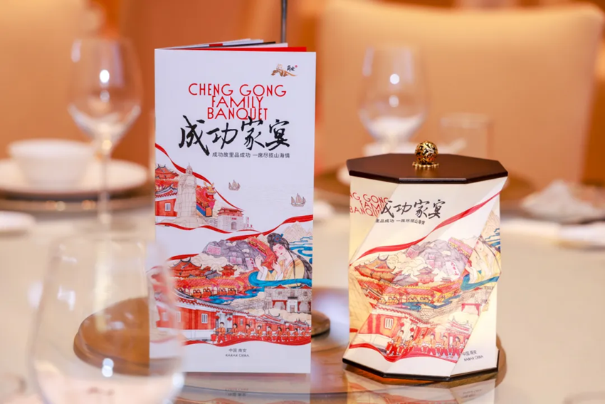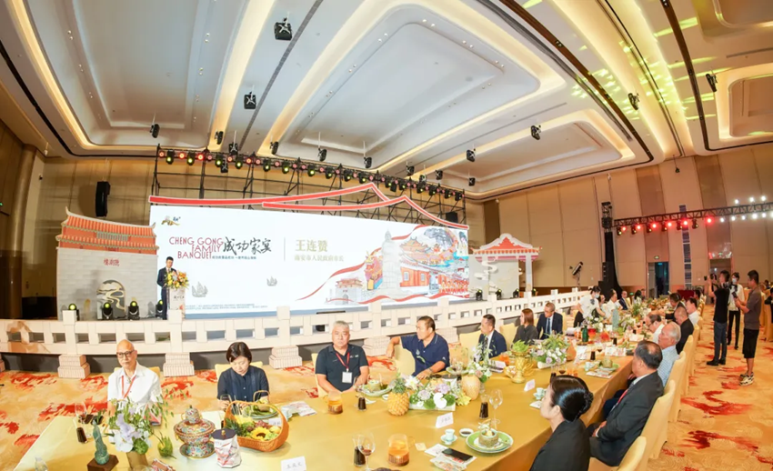 南安“成功家宴”,汇聚南安特色茶饮、前菜、水果及10道主菜,融合创新和传统的烹饪技法,以郑成功的光辉事迹为菜命名,让宾客食一口南安佳肴,享一味“成功”文化。