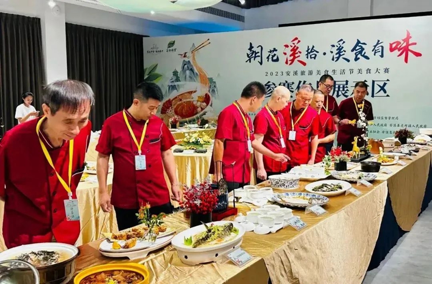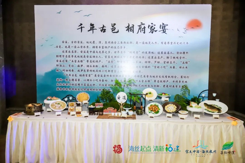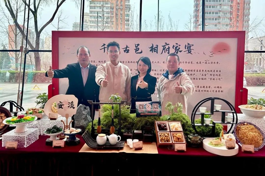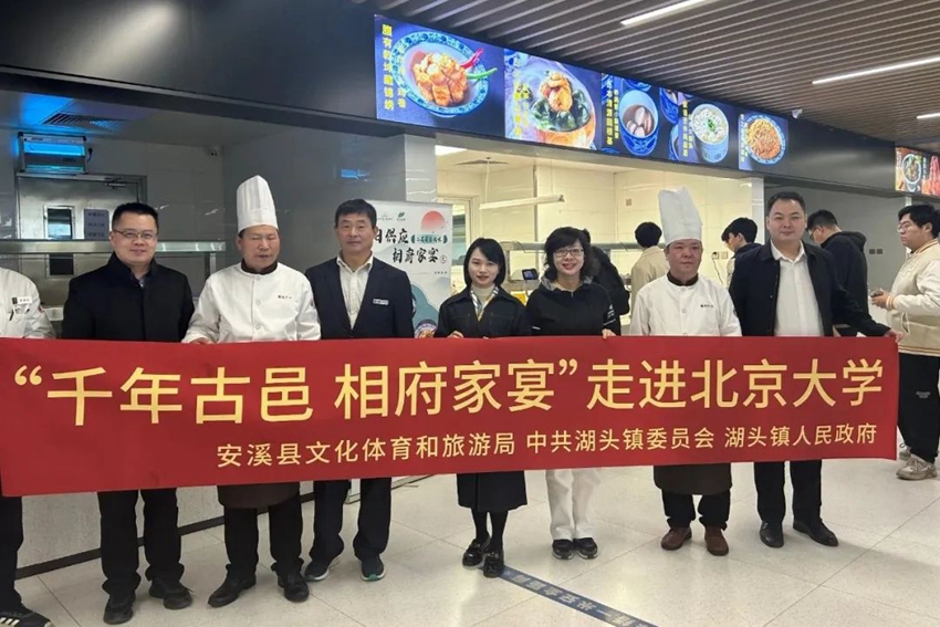 近年来,安溪县积极推广“千年古邑 相府家宴”这一地标美食热点IP,通过走进高校、参与美食大赛、交流烹饪技法等多种方式,大力推动“相府家宴”走出安溪、走向全国。累计举办“相府家宴”美食推介活动10多场次,其中:2023年4月,在泉州开展“食光烟火气,厚呷小泉州”2023年湖头小吃美食市集走进泉州古城活动;2023年8月,到北京参加“一县一桌菜·安溪篇之‘千年古邑相府家宴’”北京品鉴周活动;2023年9月,开展“溪食有味 味在阆湖”食遍人间烟火、畅享湖头百味美食节等活动;2024年3月,到北京开展“相府家宴”美食推介活动,部分菜品走进北京大学馨园食堂;2024年4月,参与评选地标美食“一县一桌菜”宴席和产品;2024年4月,在“安溪县2024茶文旅融合发展大会”开展“千年古邑 相府家宴”美食推介。