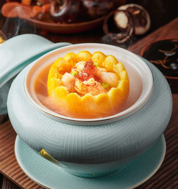 《宋元海丝宴》菜品介绍 山家蟹酿橙“山家蟹酿橙”在取材方面和以往选用的河鲜大闸蟹不同,采用闽南产地的海蟹进行制作,将《山家清供》作者林洪家乡闽南味与“古早”记载充分融合,展现石狮闽南食材独有的地理和人文,突出“海丝风味”。另外,此菜呈现了菊花老酒、蟹黄橙香的风雅意境,彰显了南宋时期中国的审美哲学。