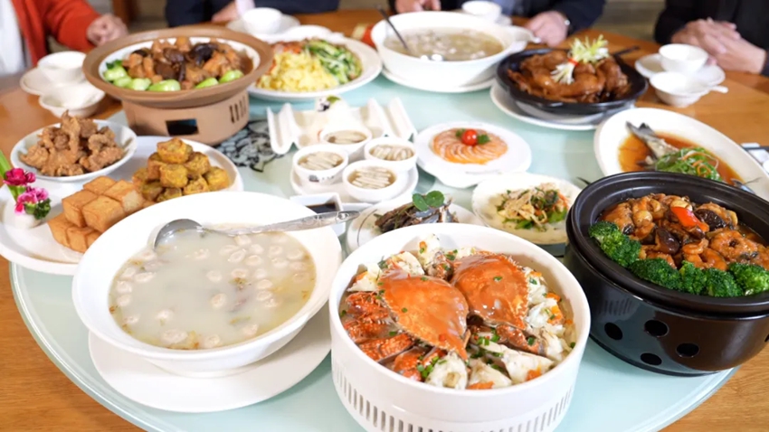 宴席上的每一道菜都有自己存在的意义,餐前小菜是来自晋江各镇街的地方特产,有荤有素、有山有海,既填补了宴会开始前的空白,又拉开了本次“归巢”宴的序幕。