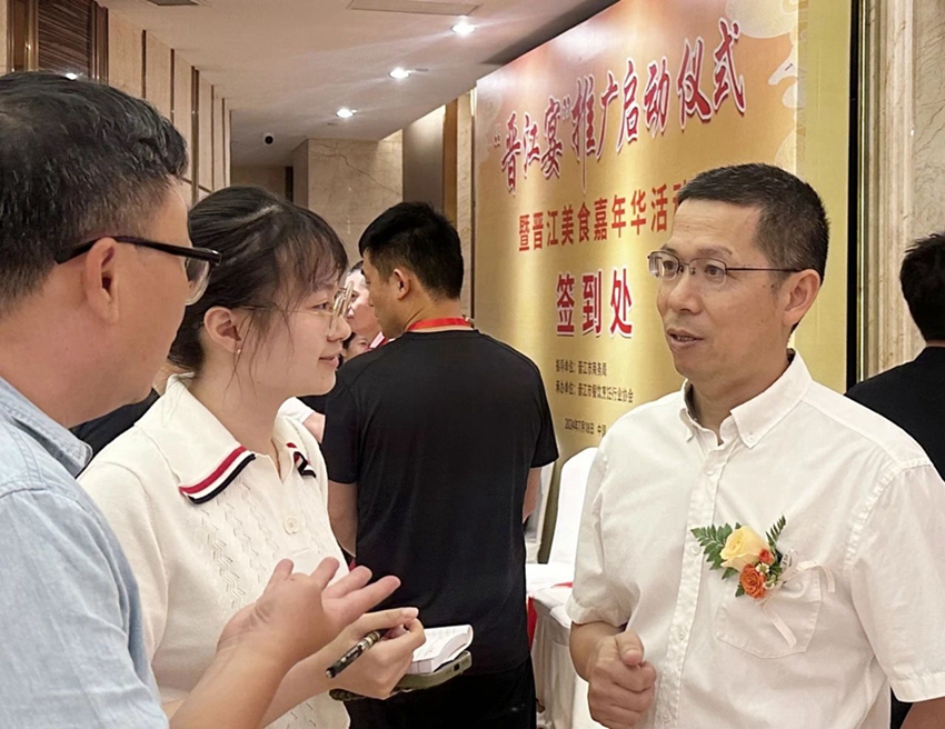晋江市餐饮烹饪行业协会执行会长兼秘书长陈山春向记者介绍活动情况。