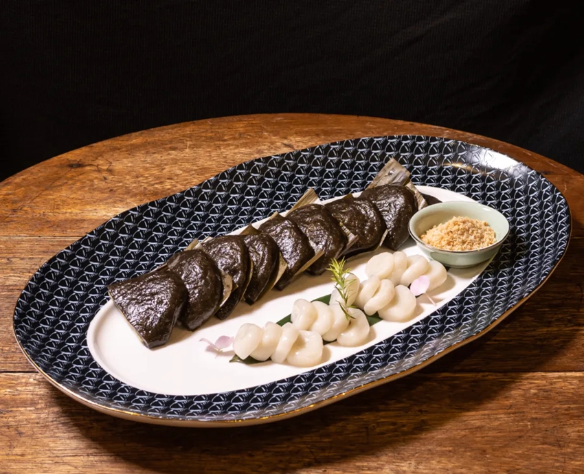 郑成功一生文韬武略,亦文亦武皆圆满。南安非遗技艺名小吃英都麻糍、黑粿仔圆圆外形、软韧清甜。黑粿仔造型如传统神龟的外壳,白麻糍则洁白如玉,二者共同呈现,是民间圆满、吉祥、如意的象征。